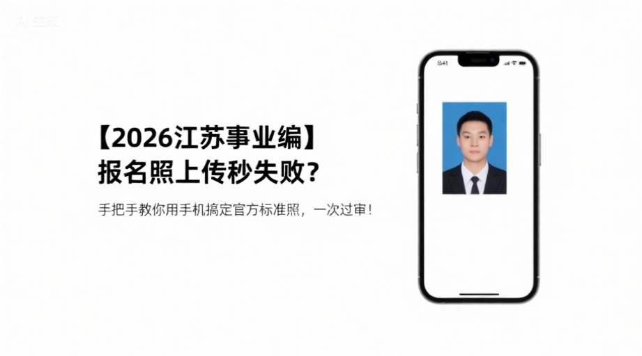 各位考生请注意!备受关注的2026年江苏省省属事业单位统一公开招聘公告已经发布,全省计划招聘6105人,其中面向2026年毕业生的岗位比例高达56.28%,机会难得,竞争激烈。报名在即,准备工作刻不容缓。每年都有大量考生因报名照片不符合严苛的官方要求,导致上传失败,反复修改,甚至错过报名时间。本文为你带来最详细的2026年江苏事业单位报名全攻略,特别是如何用手机快速制作出100%符合要求的报名证件照,让你轻松应对,一次成功!