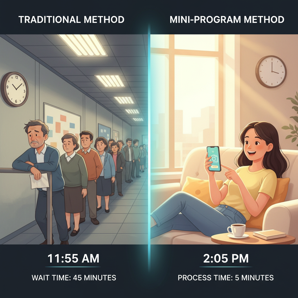 - 时间焦虑:线下办理要专门跑一趟,排队等待,耗上大半天。