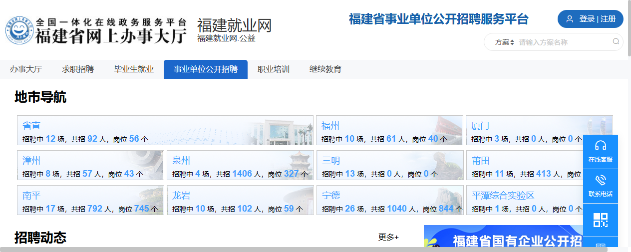 所有报名均通过“福建省事业单位公开招聘服务平台”进行。