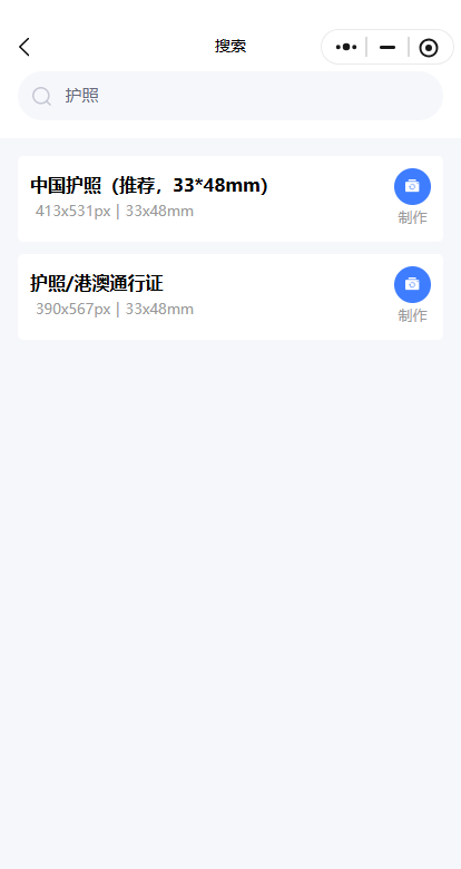 ② 在搜索框内直接搜索“护照”或“出入境”,选择对应的规格。