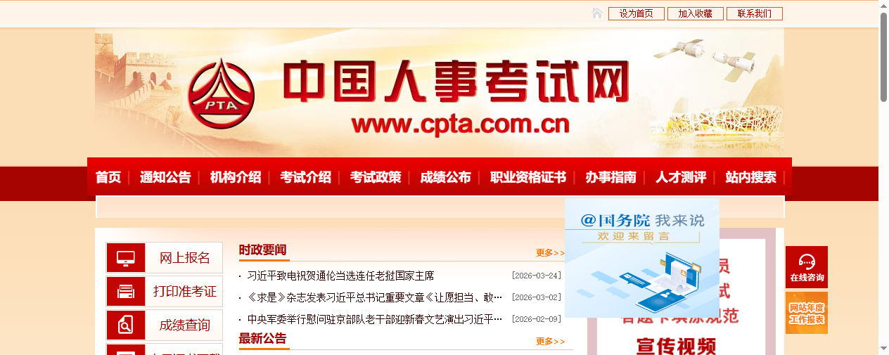 报名官方网址:http://www.cpta.com.cn(中国人事考试网)